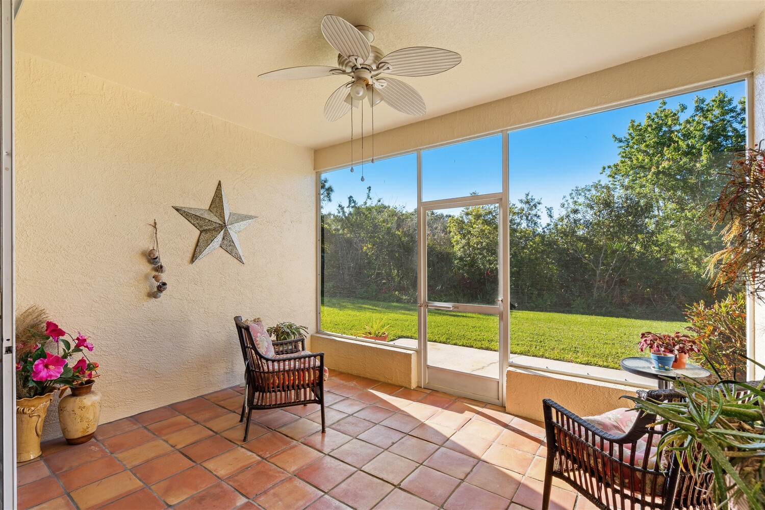 Welcome to Magnolia Pointe, a low-maintenance, gated community! This popular floor plan contains 3 bedrooms, 2 baths and is located on a cul-de-sac street. With almost 1,800 square feet under air, the open floor plan is ideal for entertaining family and friends. The kitchen boasts granite countertops, a double pantry and stainless appliances. The great room has a flexible floor plan with views to the screened porch, open air patio, expansive yard and serene preserve. The adjacent dining room can accommodate a large table and buffet. The primary bedroom is spacious with a large walk-in closet and remodeled bathroom (new sinks, counters, mirrors and lighting). This split plan layout has two additional bedrooms and a full bathroom. The laundry room is off the garage area and contains a sink, cabinets and washer and dryer. There is a 2-car garage, pull down attic stairs for storage, a 2024 gas tankless water heater, 2020 HVAC system, 2018 roof (maintained and replaced through the HOA). Community Pool and cabana complete this wonderful lifestyle in beautiful Suntree with shops, restaurants and conveniences nearby!