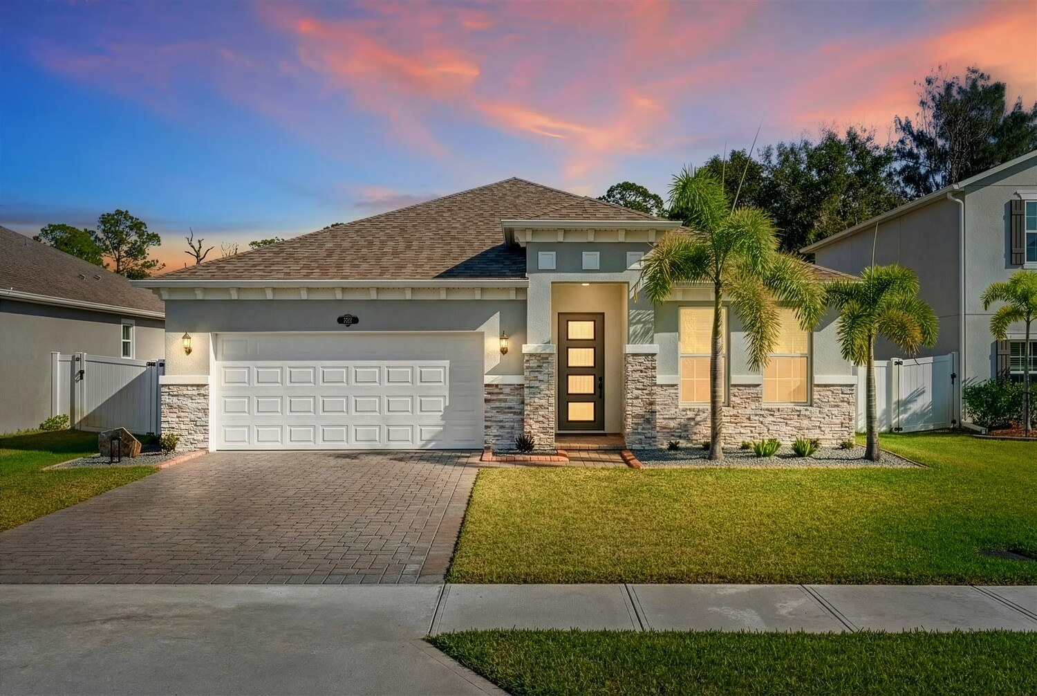 Better than new! Located in a gated community and backing to quiet greenery, this light and bright home in West Melbourne offers cozy charm paired perfectly with contemporary amenities. From the moment you arrive, you'll appreciate the modern elevation with paver drive, stone accents, and clean lines. Open the custom front door to find plenty of natural light shining through, allowing immediate access to the bedrooms and leading to the heart of the home. The deluxe kitchen features granite counters, pantry, ample cabinetry, and stainless steel appliances, perfect for entertaining and intimate family gatherings alike. The private primary suite has a custom shower and sizeable closet. All bathrooms feature granite counters and lovely cabinetry! This desirable community in West Melbourne gives you easy access to A-Rated schools, parks, shopping, dining, and is just a short drive to L3Harris, Northrop Grumman and the airport.