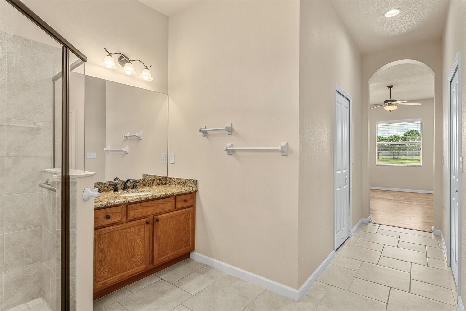Beautiful home in the gated 55+ community of Alamanda Key! This open floor plan offers a spacious great room and kitchen with granite countertops, stainless steel appliances, and a large screened patio overlooking serene fields and a lake. Tile flooring flows throughout the main living areas. The split bedroom layout includes a primary suite with two closets, double sinks, and a large walk-in shower. Additional features include an inside laundry room and a two-car garage with a unique ramp-style floor. Enjoy community amenities like a clubhouse and pool in this vibrant, active adult neighborhood!