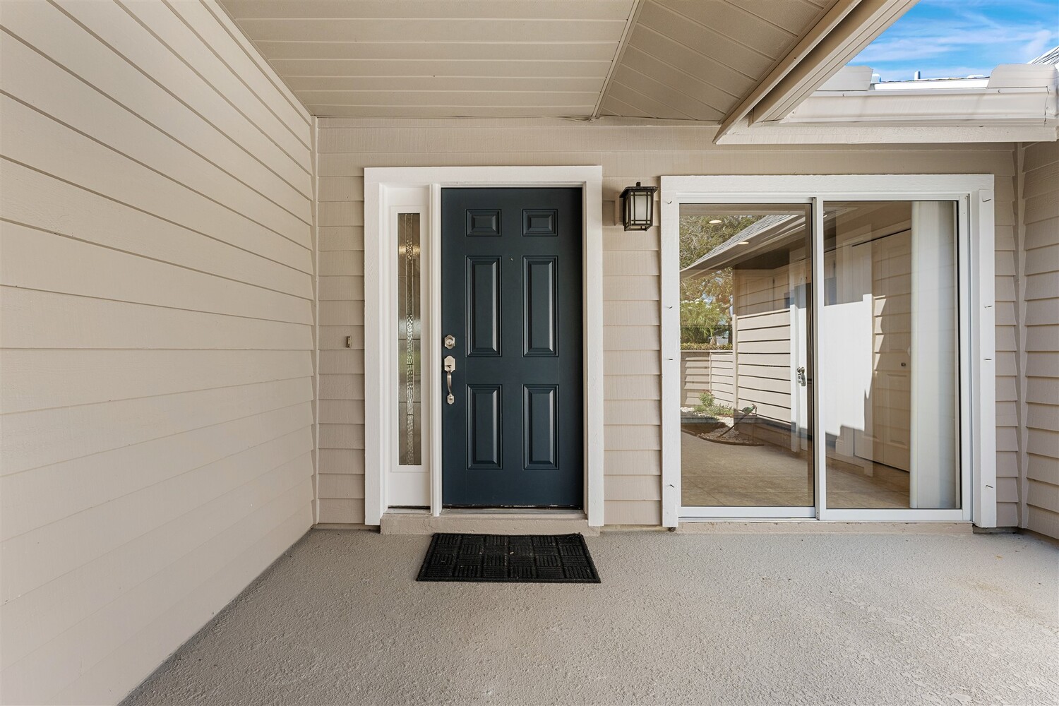 MOVE IN READY - Tucked in the quaint Suntree neighborhood of Quail Point, find this tastefully updated two bedroom two bath townhome. The open floor plan boasts skylights, new cabinetry, interior doors, hardware, plumbing and paint throughout. Enjoy stunning sunset views across of the 15th hole of the Suntree Country Club. The spacious primary bedroom features a thoughtfully redesigned bathroom with new walk-in shower and Japanese style soaking tub. The original back patio has been incorporated into the home adding 225 SF of AC'd living space (not reflected in tax rolls). Even the front courtyard has been newly landscaped! Oversized 2+ car garage (600 SF) with newly surfaced concrete floor can accommodate a golf cart, two cars and much more. The community pool is directly across the street. Zoned for A rated schools including the new middle school and high school in Viera. HOA fees cover landscaping and pest control making this the perfect low maintenance abode.